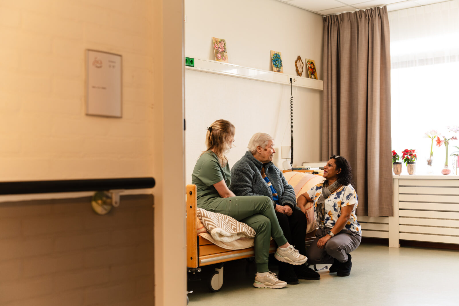 “Wat ik aan het werken in het leerhuis zo waardeer, is dat we met een team van verschillende studenten samenwerken; mbo, hbo, bol, bbl uit verschillende leerjaren en ons met elkaar verantwoordelijk voelen voor de bewoners”, vertelt een van de studenten.